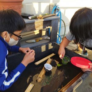 戸外活動 7 庭にあるものを使って船をつくっているようです