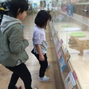 ぺットショップへ行ってきました。 静かに優しく、マナーを守って過ごす練習です。